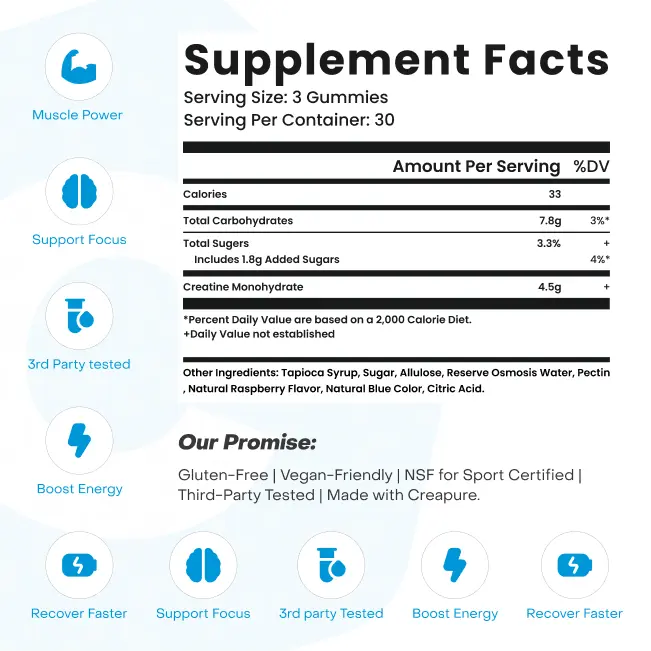 Create Creatine Gummies for Men & Women – Blue Raspberry Flavor